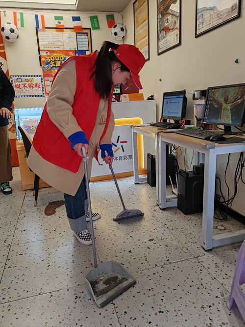 3月2日下午,志愿者前往市区3210030010网点和3210030015网点,对店内进行大扫除,擦拭门窗和桌椅,整理桌面,清除卫生死角,对宣传物料进行整理分区,清理破损、老旧、过期海报,规范张贴。清除网点终端机灰尘,规整店内线路。在此过程中,技术人员不仅对各市中心终端机技术员进行技术指导,分享终端机维修护理经验,还向代销者、销售员讲解终端机实操和简易排障技巧。通过志愿服务,全面提升了店内购彩环境,排查安全事故隐患,展示了良好的行业窗口形象。