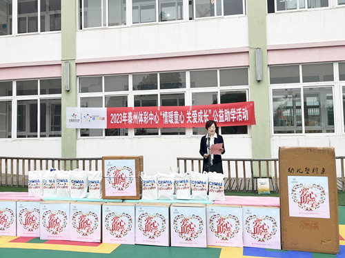 泰州市体彩中心主任周莉表示,少年儿童是祖国的希望和民族的未来,泰州市体彩中心此举旨在共同推动教育、体育事业融合发展,帮助儿童在体育锻炼中享受乐趣,增强体质,健全人格,促进幼儿“体、智、德、美、劳”全面发展。中国体育彩票作为国家公益彩票,时刻关爱青少年健康成长,在助学的道路上将不断汇聚微光,聚沙成塔,守住公益初心,践行责任使命。
