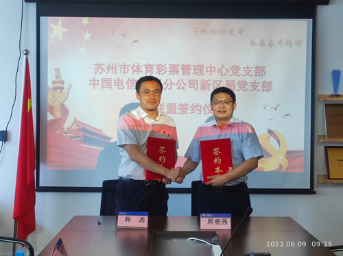 6月9日上午,苏州市体育彩票管理中心党支部与中国电信股份有限公司苏州公司新区局党支部在新区电信局开展了党建翼联签约仪式,双方进行了业务交流,并签订党建翼联协议书。随后,全体党员一同前往李强纪念馆参观学习、重温入党誓词。