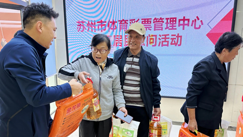 在此次走访慰问中,大家与社区居民深入交流,细致询问他们的日常生活情况、面临的实际困难以及对晚年生活的期待,耐心倾听每一位居民的心声,积极提供解决困难的建议与帮助。同时,苏州体彩向居民赠送了大米、食用油等生活必需品。