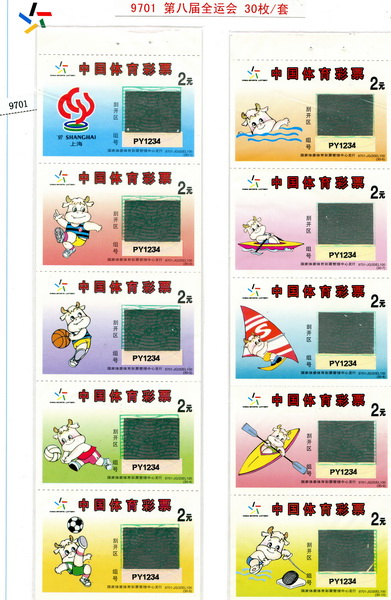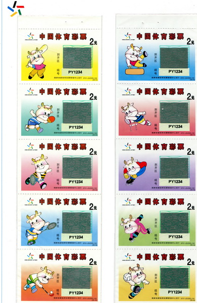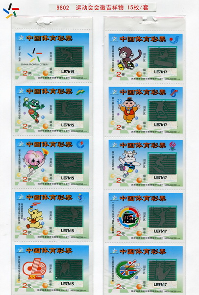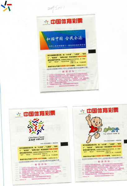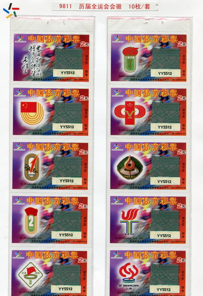 全国运动会、全国冬季运动会、全国城市运动会、全国体育大会是我国主要的综合赛事。为筹集资金办好运动会,国家体育总局和地方政府先后发行了运动会不同种类的彩票六百余枚。其中:1985年-2009年共发行了全国运动会彩票二百二十余枚,全国冬运会彩票二百三十余枚,全国城市运动会彩票百余枚,全国体育大会数枚。这里展出的部分彩票,反映了我国体育彩票的发展过程。同时,彩票设计题材丰富,图案印制精美,具有收藏和欣赏价值。