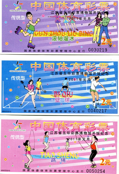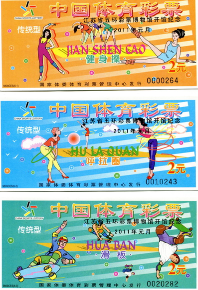 江苏省五环彩票博物馆在开馆之际,加字“9809CES电脑票”作为纪念票,一是因为这套电脑票是江苏省首发票,具有极高的纪念价值,二是这一套电脑票起,走上江苏卫视,并隆重推出--夺标800,自此,体育彩票进入全国电视媒体。(华明)