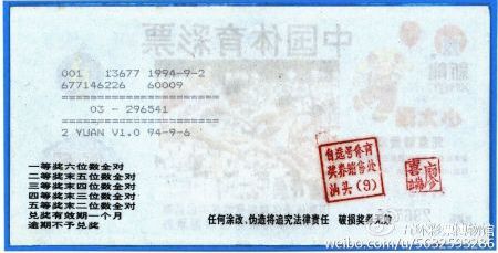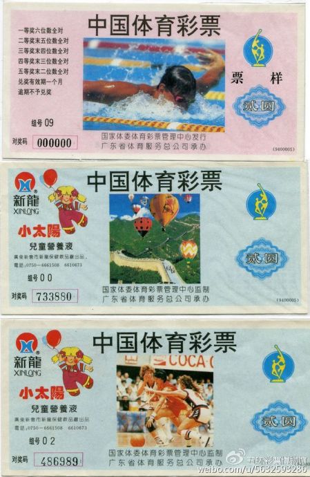 其中一张彩票印有5个奖级的中奖规则,二等奖至五等奖的中奖率少于当今主流的标准6位数玩法。无论是玩法设计、还是投注方式的变化,均体现了中国早期地方传统型体育彩票玩法设计、技术体系的限制。1993年至1995年,福建、广东、江苏、吉林等省份开始尝试发行电脑体育彩票,1996年9月,中国人民银行肯定了电脑销售体育彩票的形式并正式批准包括江苏在内的6个省市作为电脑型体育彩票销售试点,为1998年6月国家体育总局体育彩票管理中心统一组织管理、统一技术标准、统一运行软件、联网统一发行电脑型中国体育彩票做了有益的探索,积累了试行经验。