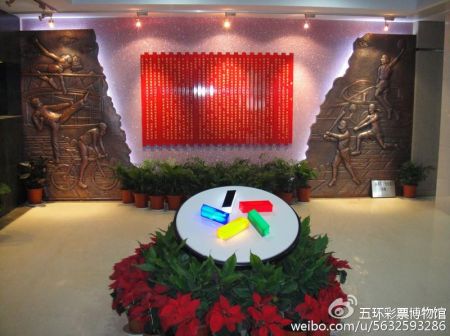当您走进江苏省五环彩票博物馆,首先映入眼帘的是博物馆的前言,前言全部采用人工雕刻,制作别具一格,前言两侧为古铜浮雕,叠缀了包括竞技体育和全民健身在内的现代体育运动的剪影,浮雕背景是南京的奥体中心和省训练中心的场馆设施,体现了体育彩票自发行以来,公益金在资助体育场馆的建设中发挥了积极的作用。