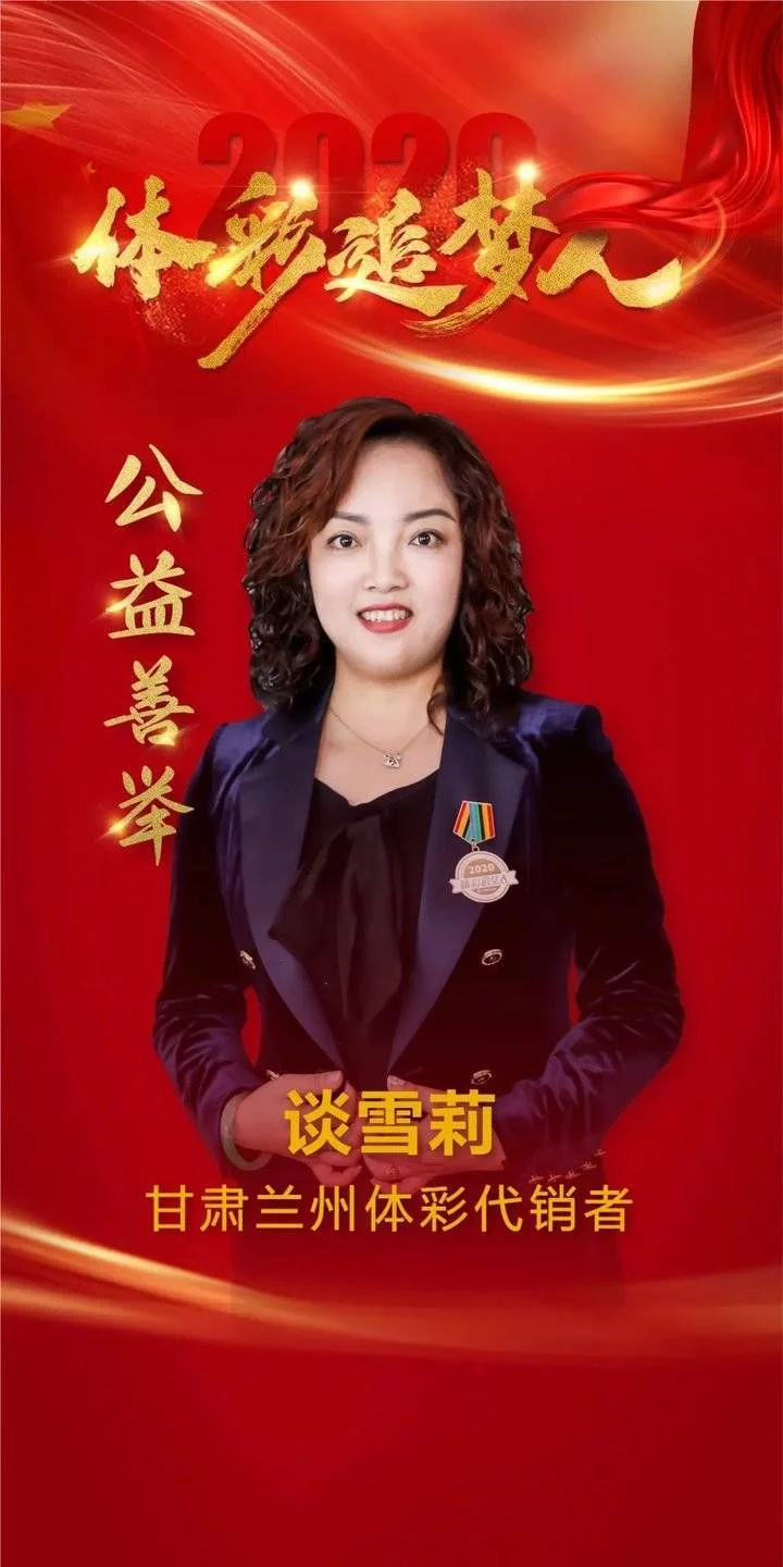 在2020体彩追梦人展示交流活动中,一位来自甘肃的体彩代销者荣获了“2020体彩追梦人”荣誉称号,她叫谈雪莉。自2006年加入体彩大家庭以来,“热爱”和“突破”成为了支撑她在体彩公益道路上不断前行的动力。因为对体彩事业的热爱,促使她不断加深对体彩的了解。因为敢于突破的性格,面对困境她亦能不断尝试;热爱公益、敢打敢拼的她, 被同行称为甘肃体彩行业的“领头羊”。