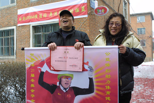 在得知周洋喜获冬奥会的短道速滑冠军后,吉林省体彩中心主任王淑颖特意来到周继文的投注站,送来了慰问金。王淑颖主任表示,周洋是中国的骄傲,是周继文的骄傲,同样也是体彩人的骄傲!吉林省体育彩票管理中心聘请周洋为吉林省体育彩票形象大使,周洋阳光健康的形象、坚韧不拔的性格和中国体育彩票这种阳光的事业相映衬,体彩正是丰富人们生活,娱乐人们精神,给生活创造更多美好和色彩的公益事业。让体彩因周洋而无限精彩!同时,中国体彩是中国体育事业发展的强劲动力,并且在诸多方面为运动员保障等方面提供着支持。在每一块闪光金牌的背后不仅有运动员们付出的血汗,还有体彩公益金默默的支持。祝愿周洋能够在未来创造更多更好的成绩,让自强不息的奥林匹克精神传递,让周洋因体彩而能够更好的畅想未来!(王昕 马敏)