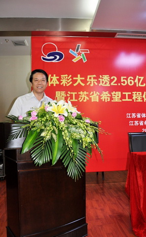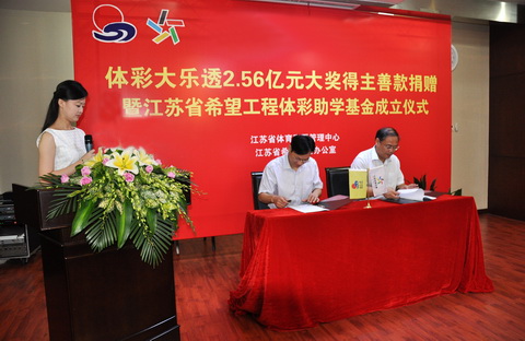 7月20日上午,“体彩大乐透2.56亿元大奖得主善款捐赠暨江苏省希望工程体彩助学基金成立仪式”在江苏省体育彩票管理中心举行。江苏省体育局副局长颜争鸣、共青团江苏省委副书记张国梁、江苏省体育彩票管理中心主任戴刚、江苏省希望工程办公室副主任魏月清等参加了捐赠仪式。