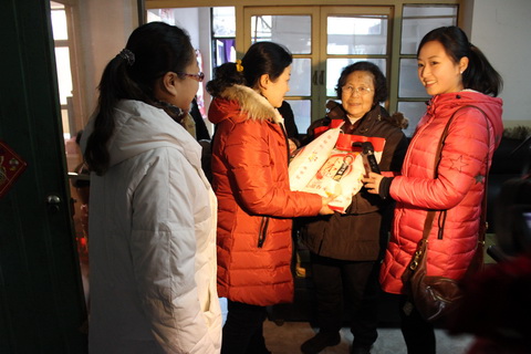 2013年1月26日上午,扬州电视台新闻女生“三关爱”大行动,携手中国体育彩票开展进社区送温暖公益行动,走进扬州市广陵区顾庄新村社区,为10户生活困难的低保家庭送去慰问以及大米、食用油等生活必需品,并送上新春祝福。
