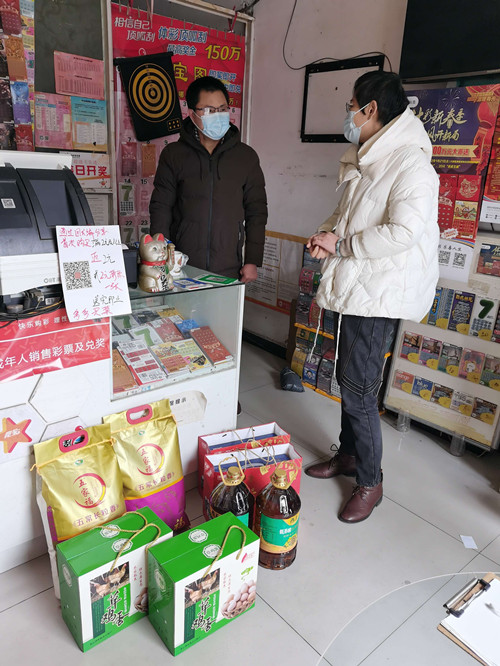 1月24日上午,连云港市东海县体育彩票管理中心工作人员一行走访慰问体彩销售网点,为困难网点带去体彩大家庭的温暖和祝福。