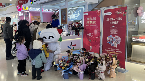 40束由“甜蜜蜜”、“玫瑰7”体彩即开彩票精心制成的浪漫花束整齐摆放在体彩展示体验中心,吸引了大批过往情侣的目光。新奇的样式、鲜艳的配色当即受到年轻男女的追捧。