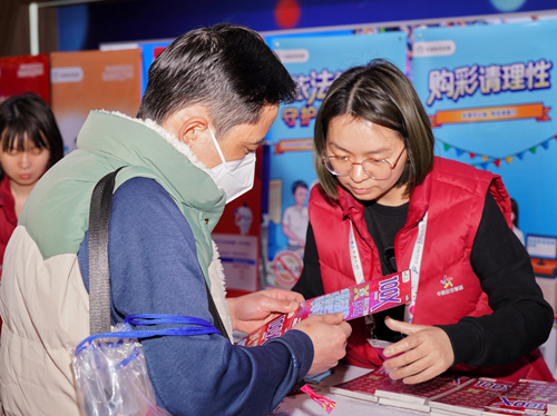 3月16日至3月18日赛前领物期间,无锡体彩还在博览中心场馆内搭建展厅,展厅内包括责任彩票展示区域、即开兑奖区、即开票展示销售区、自助销售终端体验区、吉祥物乐小星合影区等。展厅内特别设立三处中奖彩票兑奖区,参赛选手领物资后在存衣包中找到赠送的即开票,若中奖即可现场兑奖,大大方便了来锡参赛的选手们。在即开票展示销售区,近期热销的新票“超级加倍Ⅱ”以橘红、紫红、紫色为主色调占据销售台一席之地,此款即开票票面色彩更具冲击力,深受选手们的喜爱,同时在江苏体彩近期开展的“超级加倍Ⅱ”800万派奖活动的加持下,现场销售火爆。