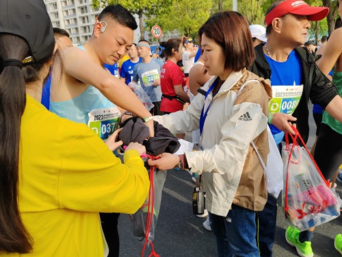 4月16日,2023扬州鉴真半程马拉松鸣枪开跑,在比赛现场,随处可见的体育彩票元素为活动增添了不少色彩。中国体育彩票不仅一直以来积极筹集体彩公益金,助力扬州马拉松赛事,今年扬州体彩更是作为存衣组负责部门参与本届扬马。