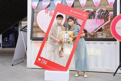 此外,现场还设置了打卡合影区,许多年轻人在这里驻足打卡,一起感受潮玩体彩的乐趣。