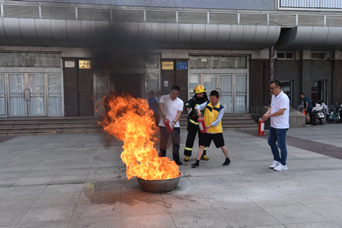 实操演练开始前,教官讲解火场灭火的规范以及注意事项,随后,每个人使用干粉灭火器或水基灭火器轮流进行灭火实操演练,进入实操环节后,大家热情明显高涨,跃跃欲试,也不时地出现操作错误,教官耐心的一一加以指导纠正,演练取得了良好的效果。