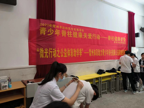 为切实提高常州市青少年脊柱健康水平,达到早发现、早干预、早治疗的三早目标,促进青少年身心健康发展,“青少年脊柱健康关爱行动”已连续四年入选常州市政府民生实事项目。该项目在常州市体育局、常州市教育局的指导下,由常州市体育医院负责具体实施,2023年将为50000名青少年学生进行脊柱健康公益筛查。该项目也是六个“常有”民生名片中,“常有健康”的重要内容之一。