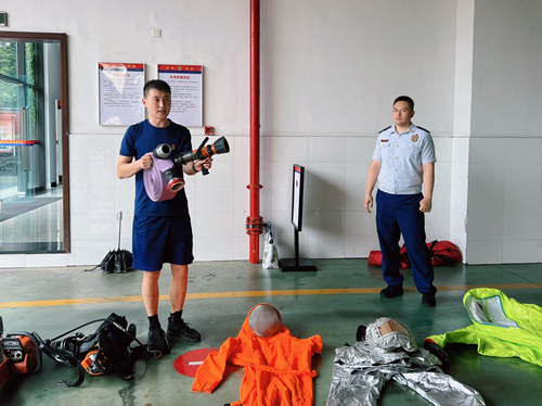 活动现场,飞龙消防救援站消防员向大家介绍了各种消防器材和救援设备,耐心细致地讲解各器材的功能和使用方法,全体人员认真听讲,仔细学习。活动最后,常州体彩、江苏女手和飞龙消防混合组队,开展了一场篮球友谊交流比赛。队友间默契配合,运球、传球、上篮,球员你追我赶、尽显风姿。