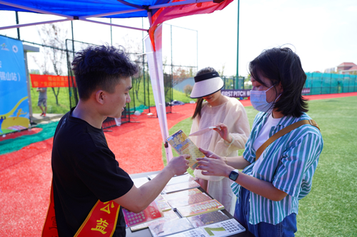 在绿茵操场上,无锡体彩搭建了“迈开步 动出彩”品牌落地互动产品营销体验区、责彩宣传区等,大家既可以了解体彩公益金的用途,还能购买即开顶呱刮一试手气。