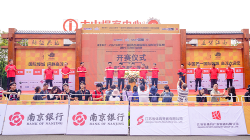 9月17日上午,2023第十一届环太湖国际公路自行车赛暨长三角穿越赛(南京高淳国际慢城站)在南京市高淳区鸣枪开赛。今年环太湖自行车赛邀请了世界顶尖的20支车队,120余名顶级运动员参赛,全程共4个赛段,赛事总赛程约 420 公里。环太湖自行车赛从“环太湖”向“泛太湖”和“长三角”不断迈进,首次走进高淳国际慢城,快与慢的精彩碰撞为环太湖自行车赛上演一场速度与激情的“破风之旅”。省体育局局长、副局长,省体育产业集团党委书记、董事长,市委常委、宣传部部长,副市长等省市领导和嘉宾出席本次活动开幕式。