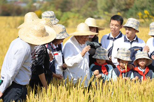 参与本次活动的有来自镇江市红旗小学低年龄段的小学生,有来自镇江市外国语学校的初中生,还有来自镇江丹阳正则高级中学新疆班的高中生,他们聚齐在一起,一同走进句容戴庄的田地里,以天地为教室,以自然为老师,体验农耕的乐趣。农技专家、时代楷模,全国脱贫攻坚楷模赵亚夫老爷爷给孩子们讲述了一粒米的诞生,土地的力量,以及他扎根农村六十多年农业发展的变化,并寄语孩子们要努力学习,科技报国。讲解后,大家一起下田地,亲身体验割稻子。挽起袖子弯下腰,左手抓稻,右手握刀,刀口向斜,手起刀落,穿梭于稻田间,一茬一茬地收割成熟的稻子,体验最原始的收割方式,真正体会了“锄禾日当午,汗滴禾下土”的艰辛。