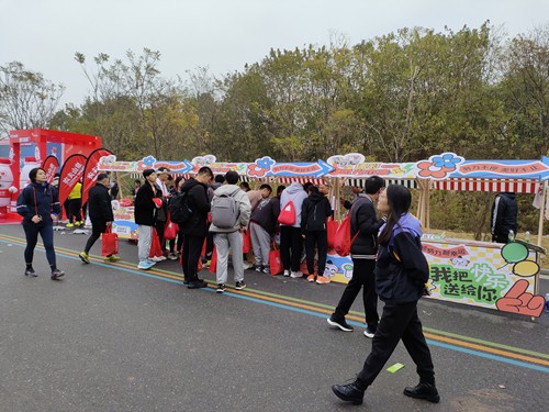 在赛事终点,句容体彩设置了打卡点、拍照墙、公益金展示板、微光市集区,体彩工作人员向现场人群发放公益、责任宣传单,跑者不仅体验了速度与激情,到终点后进行拍照打卡,记录青春的瞬间,同时还进一步了解了中国体育彩票为人们对美好生活向往所作出的贡献。