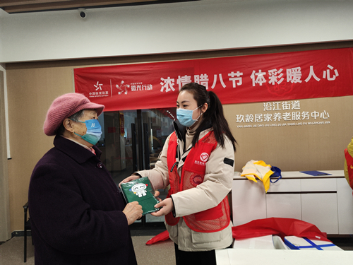 1月18日,农历腊月初八。为大力弘扬中华民族尊老敬老的传统美德,江北新区体彩联合沿江街道路西社区在玖龄居家养老服务中心和新时代文明实践所开展“浓情腊八节 体彩暖人心”公益活动,为社区的老人们送去了腊八粥,并发放了体彩定制春联大礼包及小礼品,让他们既享受到舌尖上的美食,也感受到浓浓的年俗味道。