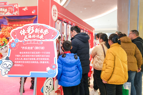 猜灯谜是元宵节最受大家喜欢的娱乐活动之一,现场一盏盏红灯笼上贴着一条条谜语,将元宵节日氛围烘托得喜气洋洋,市民、游客们穿梭在“谜语阵”中乐此不疲。灯谜内容还巧妙融入了体彩文化元素,让市民在感受传统文化同时,了解体彩文化。