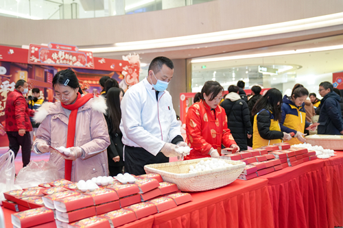 吃元宵是元宵节的传统习俗,活动现场,叠元宵手工艺人以生动有趣的语言为大家示范讲解叠元宵的制作过程。不少家长带着孩子一起动手做起来,大家有说有笑,搓、捏、按、团,忙的不亦乐乎,现场一片其乐融融的景象。