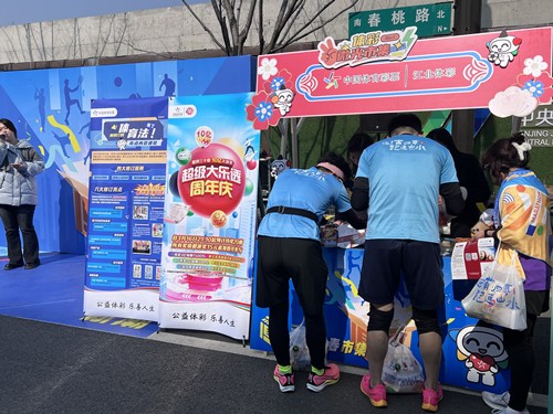 南京江北新区体彩积极借助此次“浦马”赛事契机,在半程马拉松终点“青春市集”开展公益体彩品牌推广活动,现场不但设置了醒目的体彩品牌宣传区,宣讲体育彩票的公益初心与社会责任,科普体彩公益金知识,还设置了顶呱刮即开票体验区,喜庆的即开票铺满了桌子,精美的票面吸引了众多跑友前来上手体验顶呱刮“一刮为快”的刺激和魅力。现场人头攒动,热闹非凡,大家在为自己赢取一份幸运的同时,也在用实际行动支持公益事业。