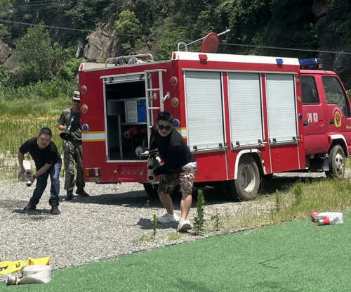 在实践环节中,参训人员亲自参与了消防器材的实操演练。教官展示了消防车、消防作战服以及各类消防工具的使用方法,特别是消防水带的操作技巧。在现场,参训人员在教官的指导下,实践了消防水带的连接、水带的铺设和收卷,以及水枪的正确使用方法等内容,切实体验了消防员扑灭火灾的艰辛,同时掌握了灭火的基本技能。