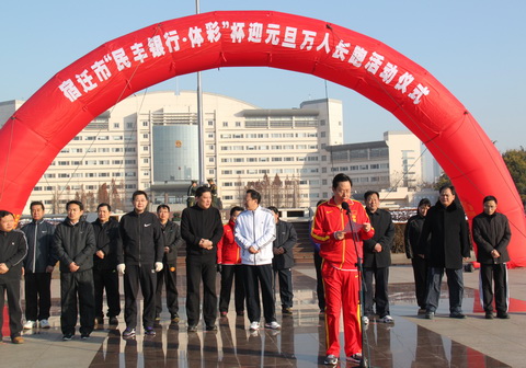 元旦万人长跑,在宿迁已经举办了10年。迎接2013年的元旦万人长跑在形式上进行了创新,参加方队由体育健身爱好者自行组织。来自市区机关、企业、社会体育健身俱乐部等的40多个方队高举着体育健身的旗帜,形成了2013年万人元旦长跑的一道亮丽风景线。宿迁体彩通过宣传展示、方阵参与等方式,展示了体彩公益形象,与千万市民感受着宿迁大地的活力与热情,一起迎接新一年的到来。