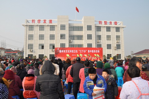 1月23日下午,泰州市2013年文化、科技、卫生“三下乡”集中服务活动在海陵区苏陈镇西石羊社区广场启动。这次“三下乡”集中服务由泰州市委宣传部、文明办、教育局、科技局、体育局等18家单位联合组织,服务团为当地群众带去了价值40余万元的款物,以及精彩的文艺演出,并在现场为居民提供文化、教育、科技、卫生、医疗、法律等服务。