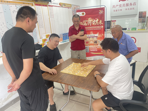 自6月以来,“好运‘弈棋’来”全国象棋民间棋王争霸赛的海选赛就在激烈上演着,一个个体彩网点化身成为象棋比赛场,这其中也不乏体彩党员服务店的身影。