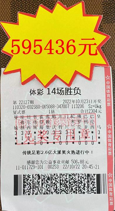 金秋是收获的季节,10月23日,中国体育彩票传统足球14场胜负第22127期开奖,位于镇江扬中江洲南路139号的3211011729体彩网点传来好消息,该网点一位彩友刘先生收获一等奖1注,奖金394893元,一等奖派奖1注,奖金129032元,二等奖11注,奖金71511元,合计收获奖金595436元!