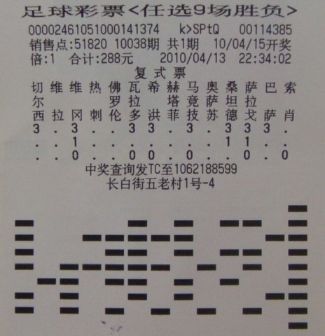 南京彩民李先生(化姓)凭借一张复式票,揽获足球彩票胜平负任选9场33047元。虽然买的是传统足彩,但他还是偏爱在位于南京市长白街五老村1号-4的51820竞彩店进行投注。