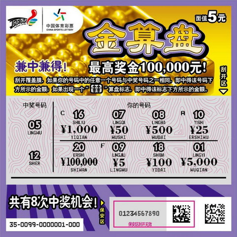 苏州彩民如愿斩获百万大奖,“闪耀宝石9”的炫目光芒仍在绽放,新票“金算盘”也于近日登陆我省。该票单张面值5元,共有8次中奖机会,最高奖金10万元。