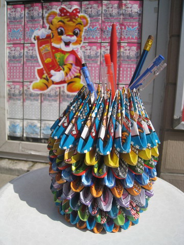 时下,把刮过的体彩“顶呱刮”彩票做成饰品来装扮站点的事已经屡见不鲜了。“顶呱刮”彩票色彩艳丽,图案精美,把刮过的票整理一下,做成各式各样的手工艺品,既能美化站点,更能起到宣传作用,实在是变废为宝的好方法。