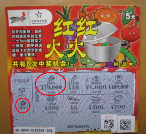 吃完午饭,小王才想起这三张彩票,急忙拿出来一边刮,一边和同事打趣,“哥们,我要是中大奖,今晚我请你们吃大餐。”刮了第二张,小王激动了:“啊呀我中奖了!”一帮同事在旁边笑他,无动于衷,不想小王像着魔了似的,一溜烟向体彩点跑去。这时,同事们才回过神,“真中了,真中了,小王他中奖了”,也跟着一起跑到体彩站。