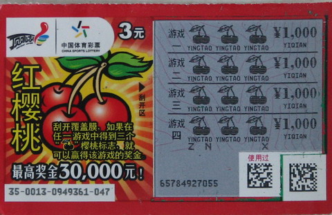 常州彩民青睐3元面值“红樱桃”的历史由来已久,不间断中出的4000元大奖就是个最好的说明,仅3月份,常州彩民就中出“红樱桃”3万元大奖1注,4000元大奖6注,可谓樱桃飘香,硕果累累。