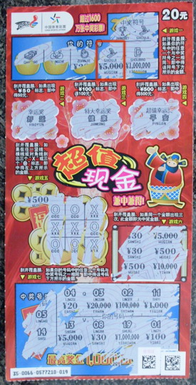 据悉,“超值现金”是继“点石成金”、“冲向顶峰”和“财神到”之后,顶呱刮第4款百万票种。为庆祝顶呱刮上市两周年,省体彩中心开展了“买超值现金 只要中5000 就送笔记本”活动,只要是在