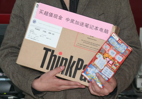 无锡小伙小张(化名)在朋友的陪同下高高兴兴来到体彩中心领奖。因为他不仅中得了超值现金1万元奖金,而且还获得了省中心赠送的联想笔记本电脑。