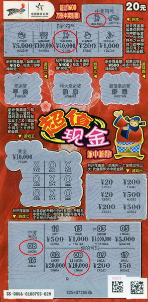 据悉,本次中奖者韩先生(化姓)为徐州03461站点的一位忠实彩民,平时喜欢体彩“超级大乐透”、“7位数”大盘玩法,也曾中过一些奖。这天下午,韩先生照例来到03461体彩站点,购买完当期“超级大乐透”,看到站点门口摆放的“超值现金”X展架和张贴的海报后,很感兴趣,经销售员介绍,得知“超值现金”是新上市的体彩即开新玩法,最高奖金100万元,而且只要中5000元及以上奖项就可获得笔记本电脑一台。韩先生当时就买了1张刮了起来,第一张就中了20元,然后用中奖的20元又换了一张,结果又中奖了,就这样韩先生一连用中奖所得换购了10张“超值现金”。功夫不负有心人,最后一张刮出了大奖20000元,并同时中得笔记本电脑一台。这令韩先生高兴不已,他表示今后还要继续支持体彩,奉献爱心,支持公益事业。