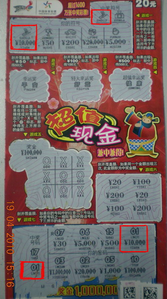 回到酒店后,王先生刮出了不少小奖,当他刮到“10,000”的时候,王先生以为只有这么一个奖就没打算把下面的刮出来,就和妻子兴冲冲的去站点上兑奖了。到了站点上,妻子看下面的没有刮出来,就在旁边拿了个硬币刮了起来,没想到竟然又中了1万元,就这样夫妻两人分工合作一共刮到了2万元。