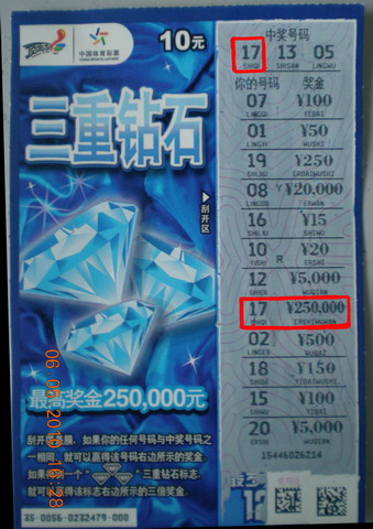 5月6日中午,太阳晒得韩先生和顾先生躲进了吴江市汽车站里,在汽车站里,韩先生看到了柜台上摆着琳琅满目的顶呱刮彩票,他就兴冲冲地拖着顾先生的手臂商量道:“小顾这样吧,我出钱投资来买彩票,你负责刮彩票,等中了奖,我们平分。”顾先生一想这样的好事岂能错过,就满口同意了。顾先生挑选了三张“三重钻石”,在刮第一张的时候,他拿了个硬币一股脑儿把兑奖区的数字全刮开了,当他看到有个兑奖区的“17”对上了中奖号码的“17”时,他兴奋地对韩先生说:“果然是好兆头啊,希望能中个几千块钱啊。”结果旁中奖金额一显示出来,顾先生就懵了,呆呆了看了看韩先生,又低下头看看了彩票,没错,是25万元,不是他们想的几千块。