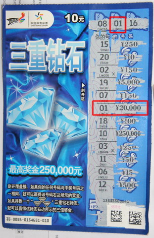 销售员介绍,18日一早他刚到店里就有几位彩民相继也来到了店里,这都是网点的老彩民,每天都来买彩票、聊聊天,这让他非常的感动。张先生(化名)就是其中的一位,最近他特别爱上了“三重钻石”,因为上个月他中过该玩法的5000元大奖,这是跟他特别有缘的彩票,因此他坚信能从该玩法中刮出更大的奖。今天他也特别选了“三重钻石”,想不到才刮了两张,就刮到了2万大奖。这时的张先生显得非常兴奋,在场的其他彩民也都为他高兴,有一位彩民还特别与张先生握了握手,说是沾沾喜气,助他也能中个大奖。