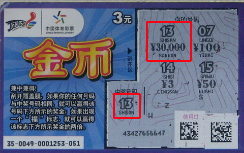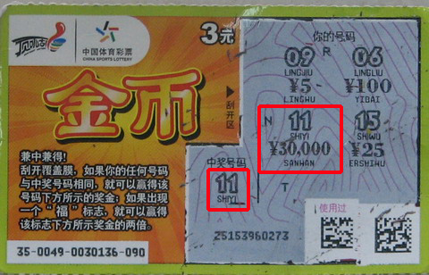 而另外一位“金币”3万得主潘先生,中奖经历相对简单,3个硬币就换来3万大奖。潘先生对体彩情有独钟,从电脑型买到即开型,各种玩法通吃,昨天走过体彩站点,进去买了几注大乐透,一摸兜里还有三个硬币,于是就随手要了张“金币”,没想到居然就中了大奖,潘先生说,真是有心栽花花不开,无心插柳柳成荫,之前买了那么多次,小奖不断,大奖却不见踪影,这次随手一张就锁定大奖,真是天上掉了个大馅饼!