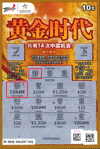 孙先生说,以前自己就中过不少的奖项,不过都是以小奖居多,前不久“黄金时代”刚一上市,孙先生就对它产生了浓厚兴趣。当天购买顶刮呱时,孙先生就特意选了两张“黄金时代”尝尝鲜,当他刮开第一张时,惊喜地发现其中一个数字与大奖数字相同,仔细刮开下面的中奖金额时,竟然是25万元的奖金。突如其来的大奖让孙先生兴奋不已,直呼“太幸运了!”