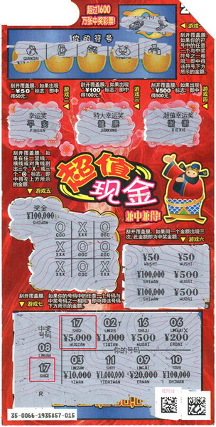 中奖者是位姓秦的小伙子,家住市区马家山路,儿童节这天他特意请了假,一大早就赶到大港的姐姐家给他最喜欢的小侄子过节。给小侄子买完礼物后,他就在大港街上闲逛起来,路过赵声路11099体彩销售站时,进去看了看顶呱刮!不过,小伙子虽然年轻,可是一点也不盲目,把站点展示出来的样票仔细看了一遍,然后再征求销售员的意见,当他听说买“超值现金”中奖达到5000元还能再得笔记本电脑时,毫不犹豫的选择了购买目标,40元买了两张“超值现金”,第一张就中了5000元。