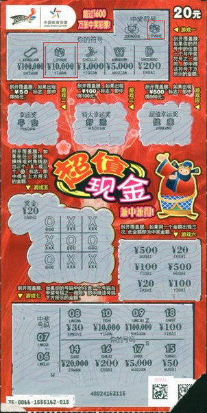 中奖者是10734站点的好邻居陈老板,朴席当地人,每天自己店里的事忙完,就到隔壁彩票店逛逛,看看走势图,打几张大乐透,再即兴刮上几张顶呱刮,中不中奖无所谓,图的是享受体彩带来的闲适、快乐的感觉。10号晚,他又来到体彩店溜达,看到顶呱刮来了新票“足球盛宴”,就刮了几张,动感的票面,有趣的游戏,让他提前体验了一把世界杯。随后,陈老板又把目光锁定在一张彩票拥有7种游戏的“超值现金”上,业主殷元告诉他,这个中5000元还送笔记本。陈老板乐呵呵地从口袋掏出100元放在桌上:“今天我就刮上几张,看能不能中个笔记本回家!”随后按顺序撕下5张超值现金,刮到第三张时就中出了1万元!