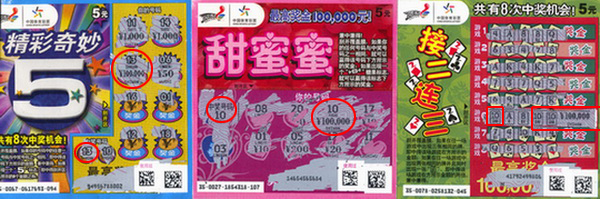 就在幸运女子离开不久,一个中年男子和一个年轻80后分别又带着他们的“宝贝”走进苏州市体彩中心,他们分别在05324站点和05016站点中得了“甜蜜蜜”、“接二连三”10万元大奖。