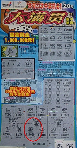 值得一提的是,李先生中奖正值“中200送100”活动期间,他还额外获赠了“大满贯”5张,价值100元。“这5张票我要留着回家和家人一起刮,说不定沾着这1万元的好运气,我还能中得更大的奖!”(南京 顾融)